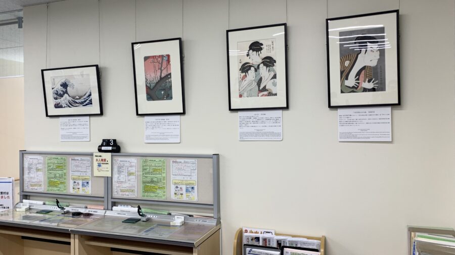 多摩区役所生田出張所1階で、喜多川歌麿、東洲斎写楽、葛飾北斎、歌川広重など、名作の複製版画を8点展示しております。ぜひお立ち寄りください!